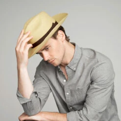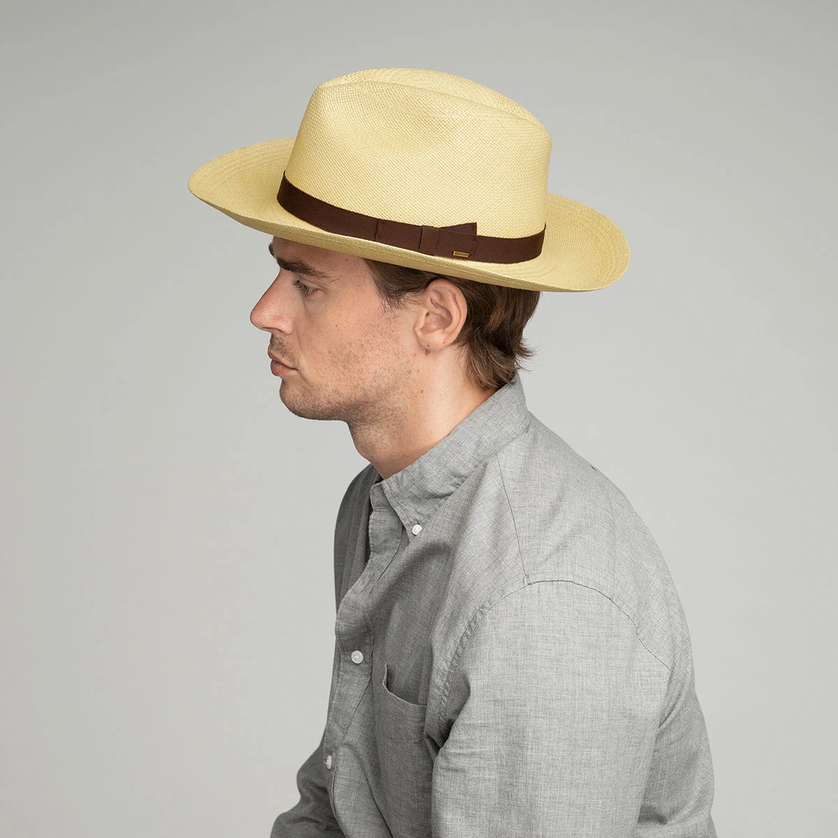 The Ardit is a classic fedora style with a medium brim in a Genuine Panama Straw. The Ardit has minimal accents, simply finished with a grosgrain band and completed with a Dri-Lex sweatband for summer comfort.