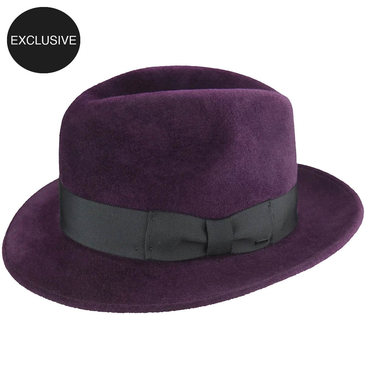 Extra soft to the touch and exuding luxury, our online exclusive Booker is fashioned from rabbit fur and trimmed with a tailored grosgrain band and bow. The center dent crown is complemented by a 2 3/8″ brim, resulting in a must-have luxurious hat bearing a look of understated sophistication.