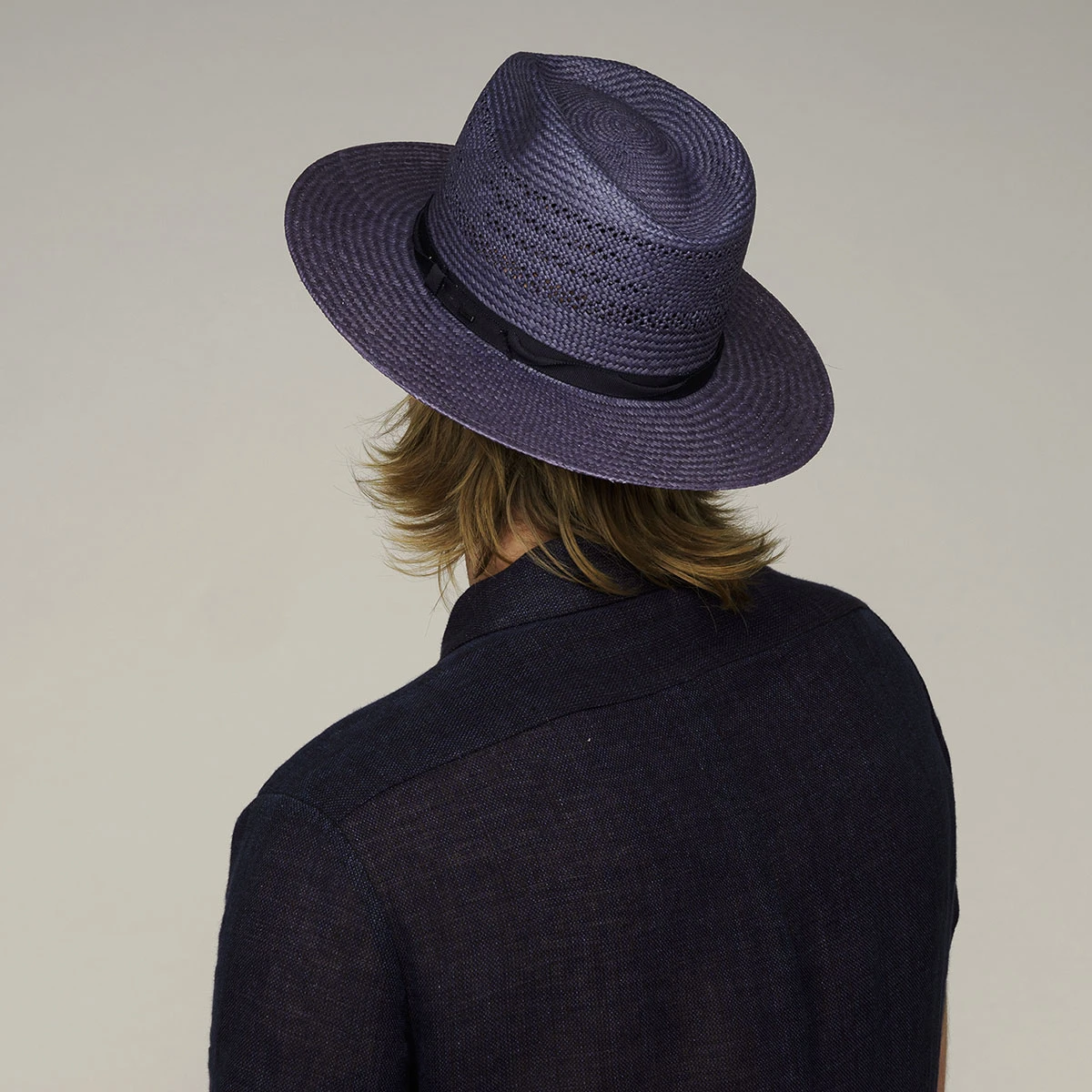 Coram is made from a Panama straw body with custom venting on the crown meticulously handwoven in Ecuador. It has a 4″ pinch front crown and a 3″ flat brim. It is trimmed with a Japanese grosgrain band and a finely woven sweatband. A great choice for the discerning Panama hat enthusiast.
