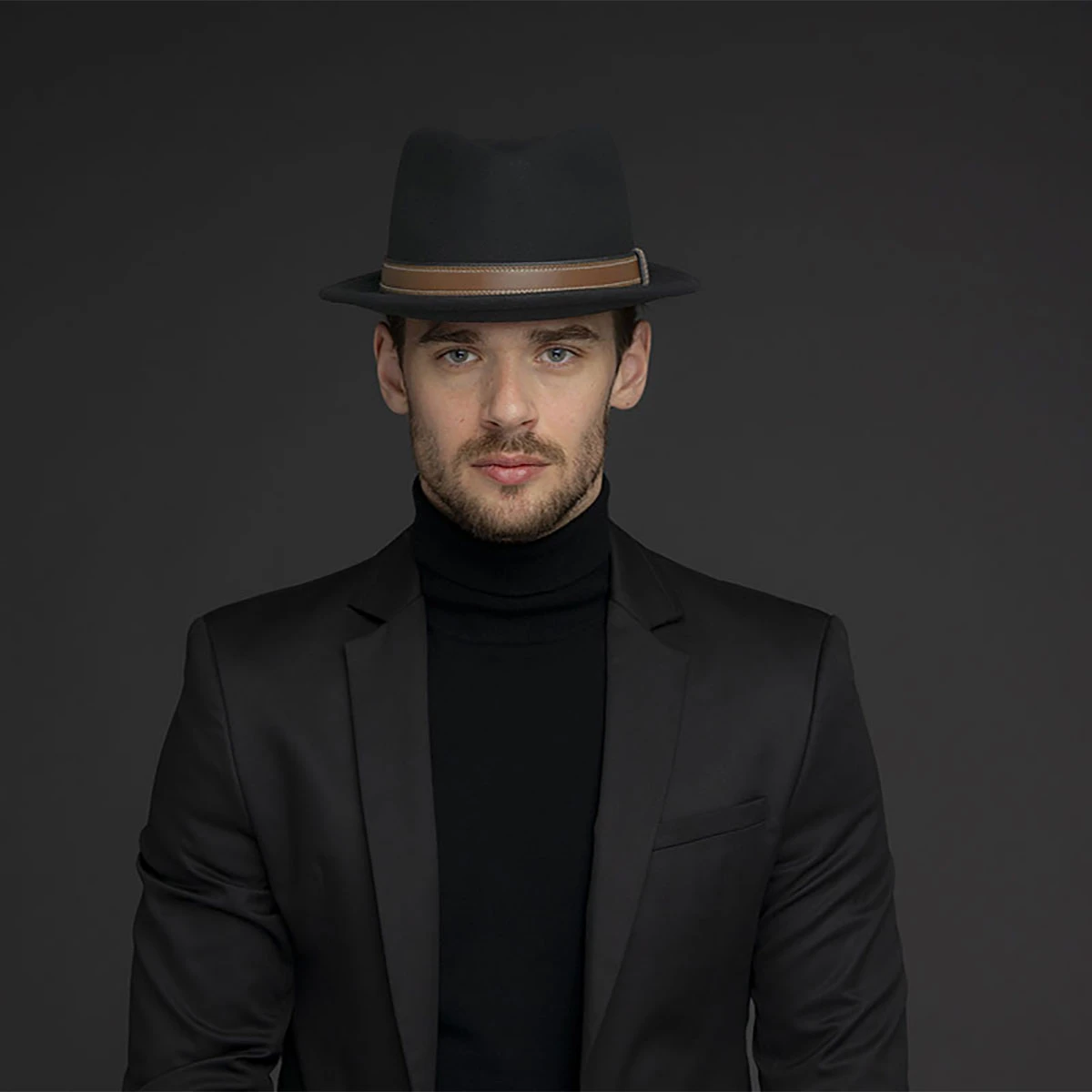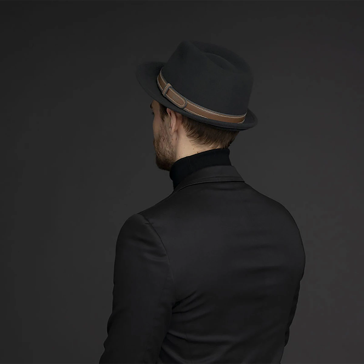 The Bailey 1922 Dodgson features a distinguished mix of a teardrop crown and contour snap brim. It’s crafted with Bailey’s shape retentive, water repellent LiteFelt® fabric, then trimmed with a contrast stitch natural leather band, and finished with a comfort sweatband.