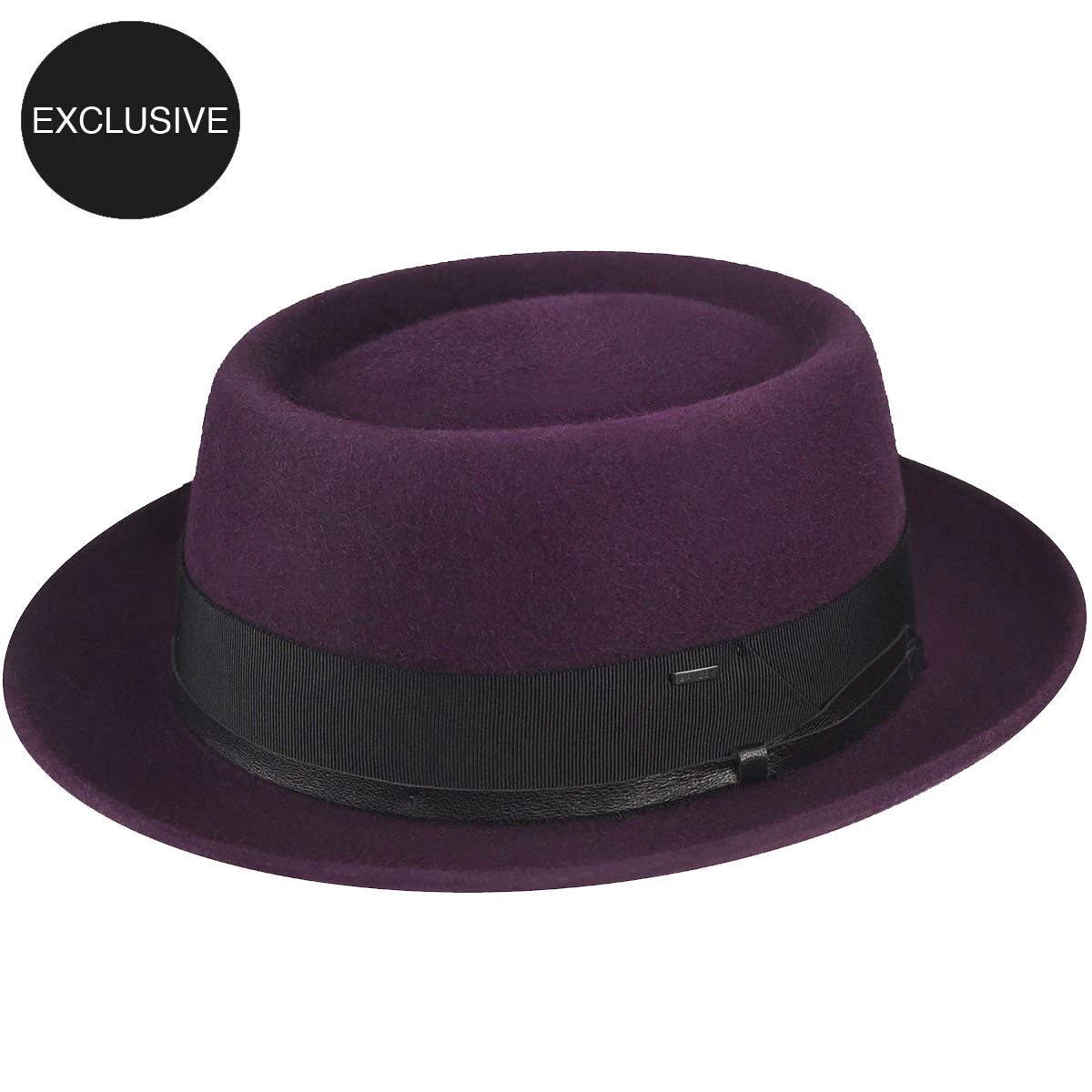 Made from luxurious rabbit fur, our online exclusive Emrys is blocked in a favorite short 2″ brim pork pie shape, a rare and appealing mix of soft texture and shape. A wide grosgrain band accented by a thin band of leather is the perfect finish to this special hat.