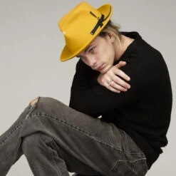 The Erler is a LiteFelt® hat with a 2-1/2″ snap brim and a severe pinch front crown. It is trimmed with a partial grosgrain band and pinch stitching at the crown. The removable nail adds a finishing touch. Make a presence this season in this charming new style.