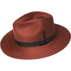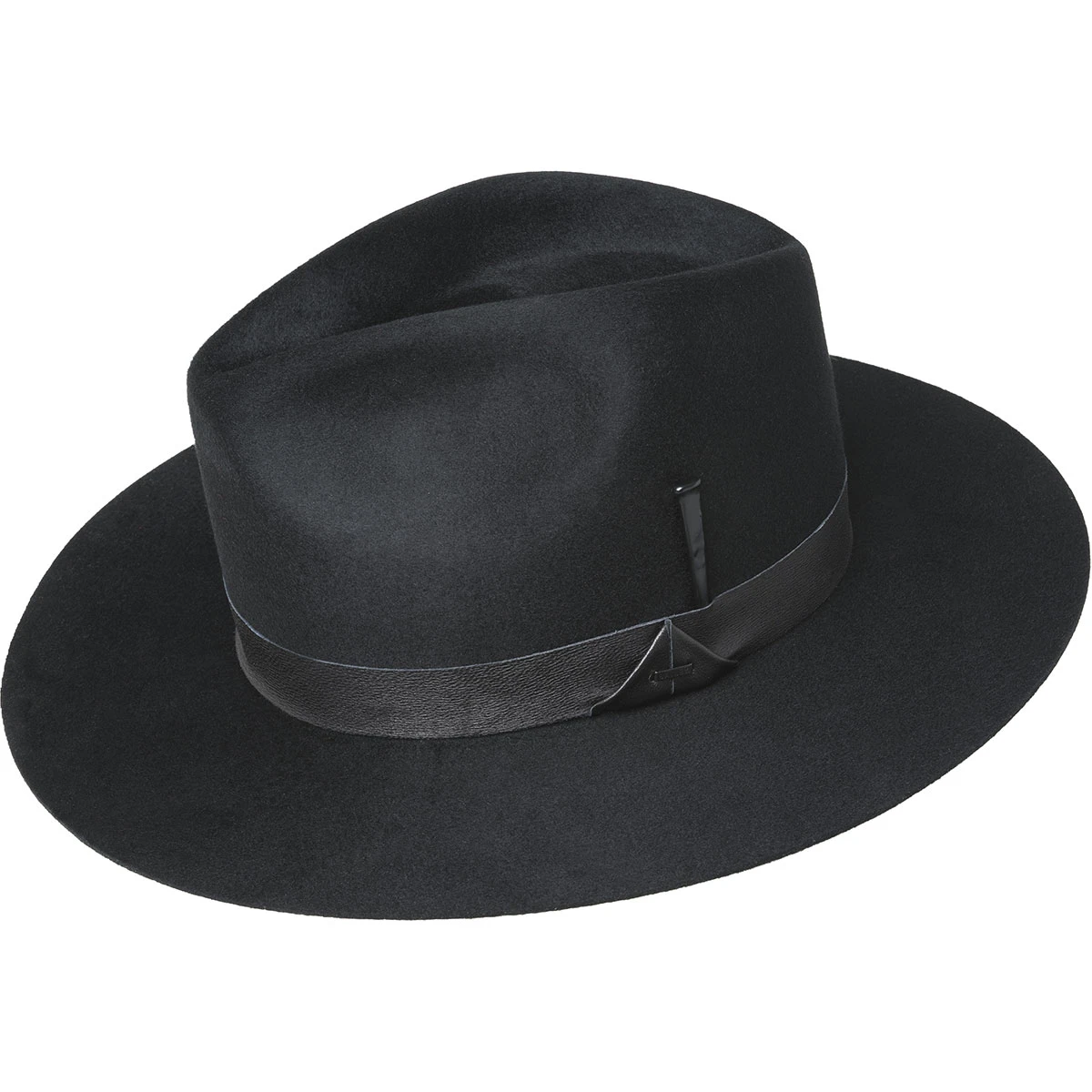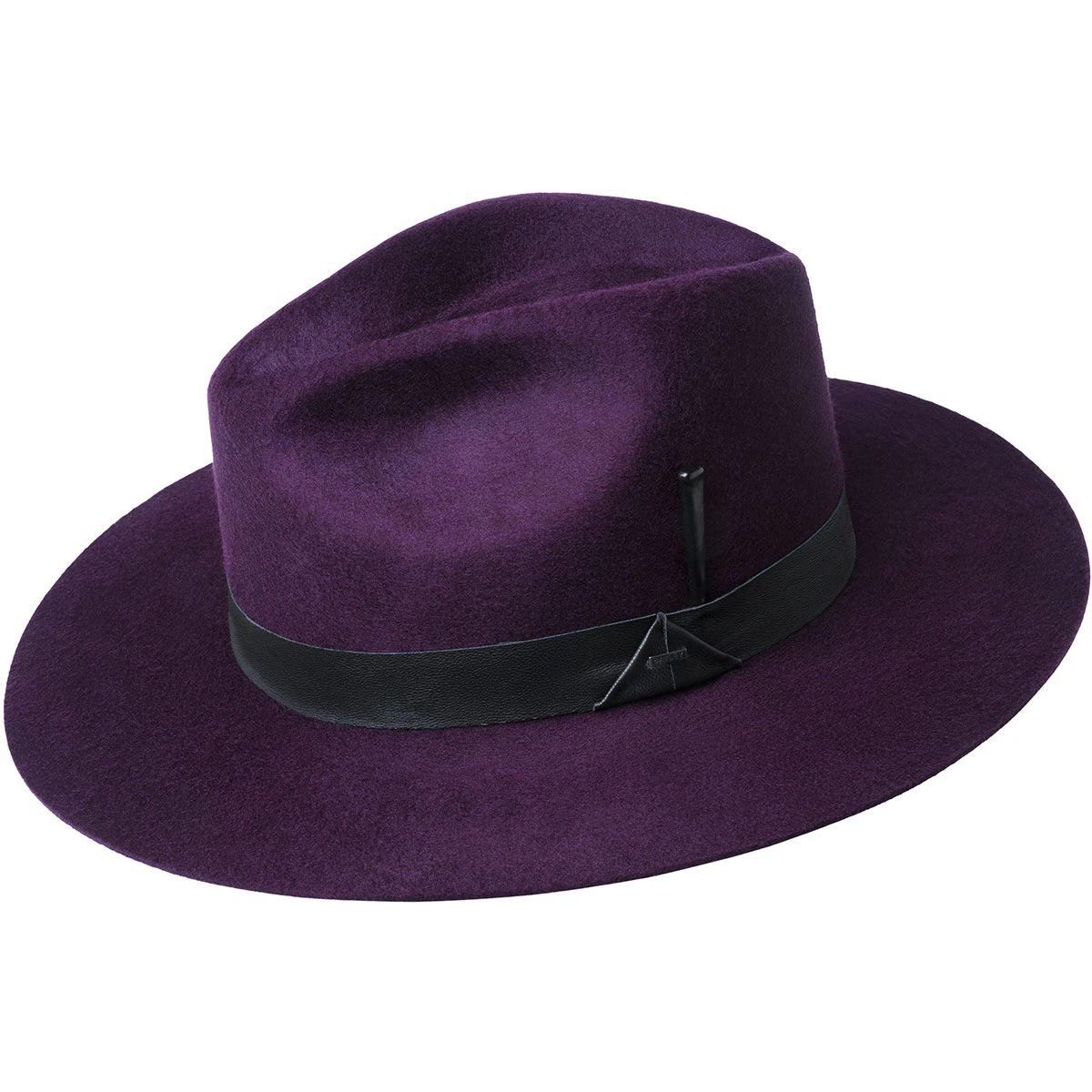 The Godwin is a long teardrop crown with a 3″ flat brim featured in our newest finish, Wool Velour. This is the ultimate wool finish to mimic a fur felt feel with a sustainable purpose. It has a modern feel with a butter-soft leather band with our signature double triangle fold. Our Bailey signature dipped nail is tucked behind the band to finish.