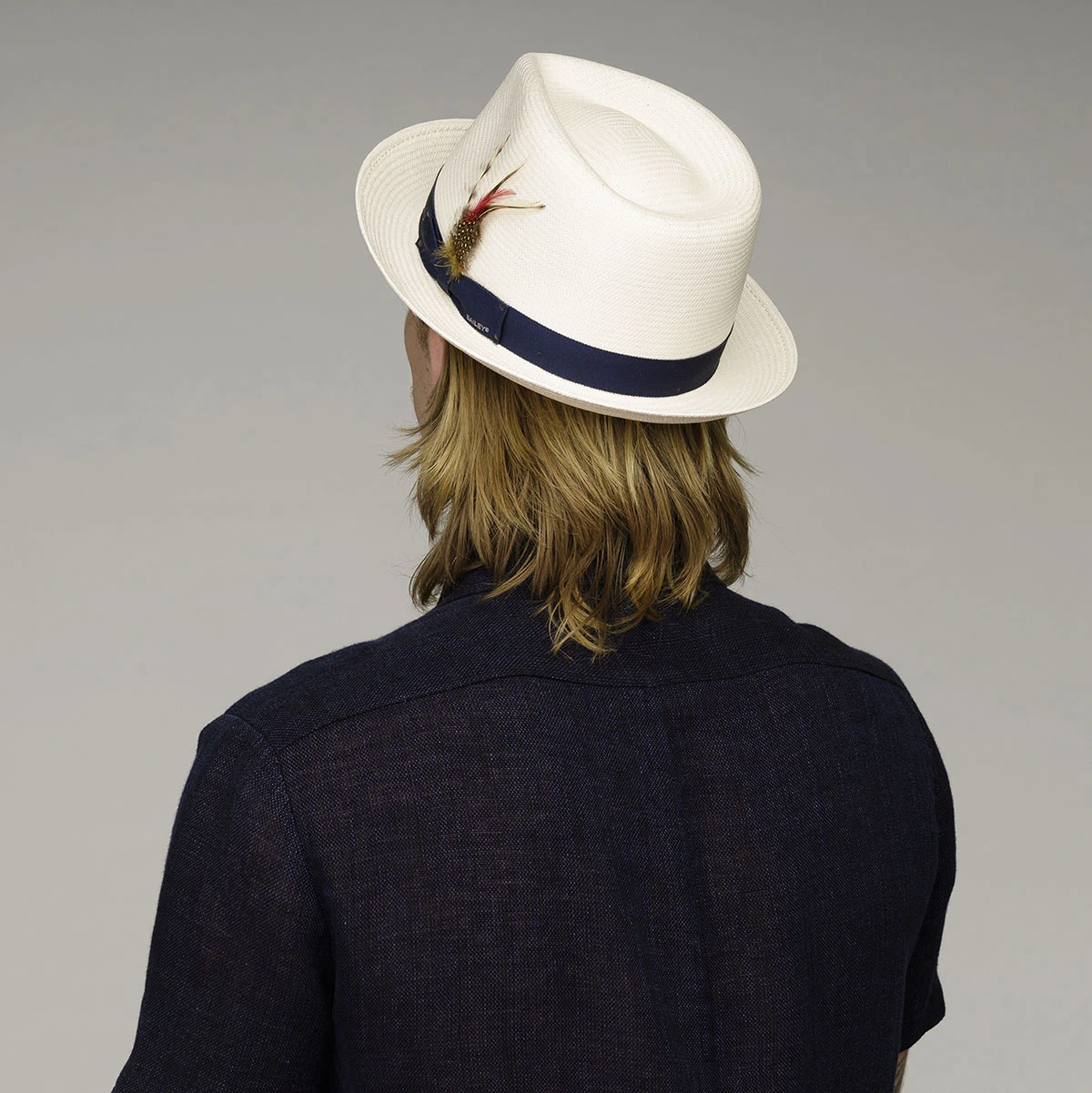 The Guthrie is a classic ultra flattering Fedora crafted from our “Shantung Panama” LiteStraw. With a medium size brim that will provide sun protection for years to come, this classic Fedora will soon become a wardrobe staple for spring and summer months. Available with a seasonal array of band colors accented with a removable feather, the Guthrie is an ideal day to night Fedora. Made in the USA with Globally Sourced Materials.