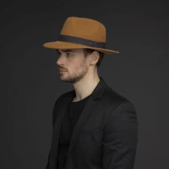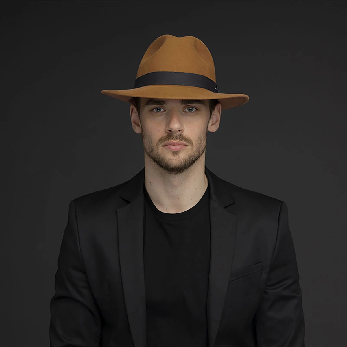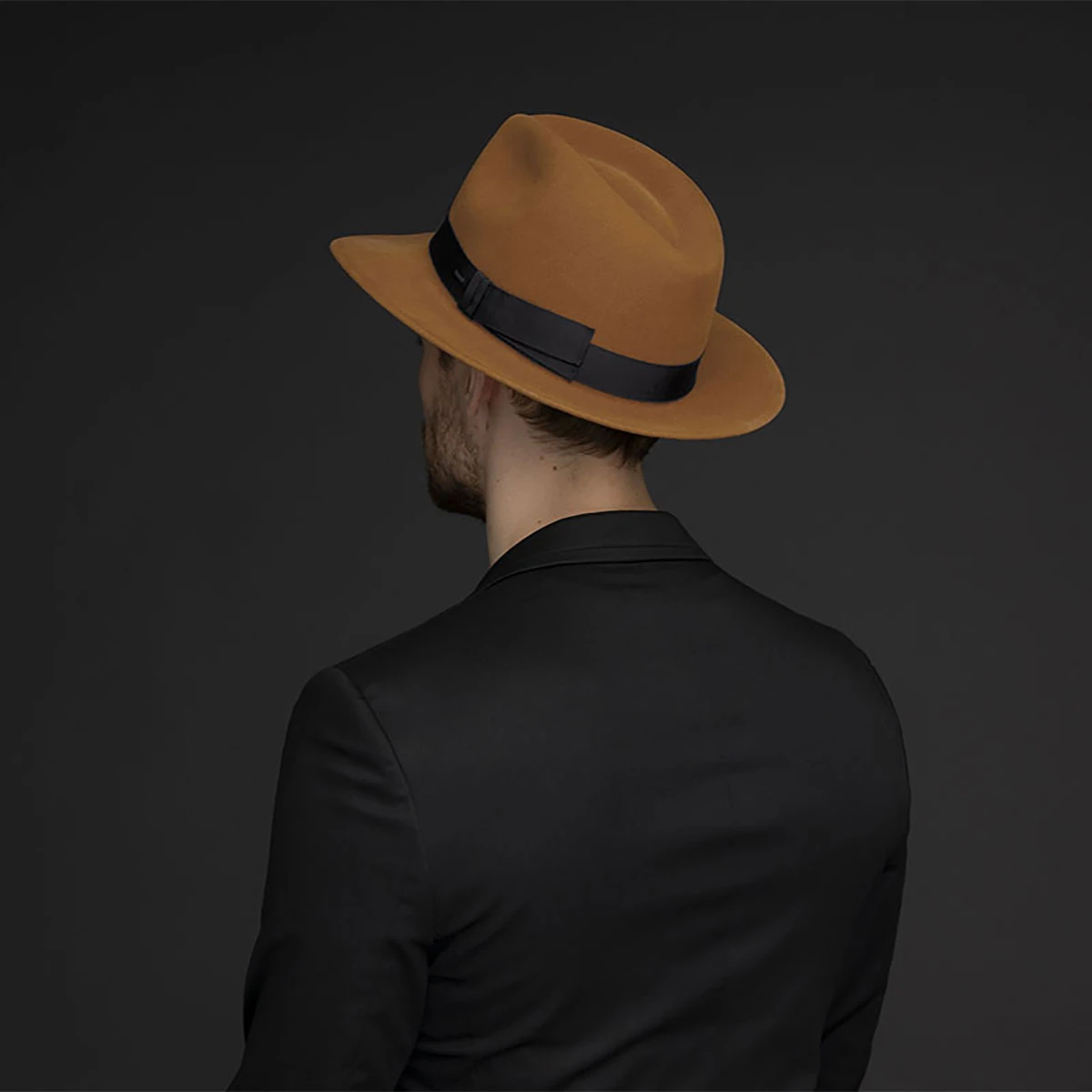 The Hereford is a long teardrop crown fedora with a medium brim. It is crafted with Bailey’s Elite Finish wool -their finest wool available. The hat is trimmed with a Japanese grosgrain band, unlined for a lightweight feel, and finished with a woven sweatband for added comfort. The Hereford is produced in the U.S.A.