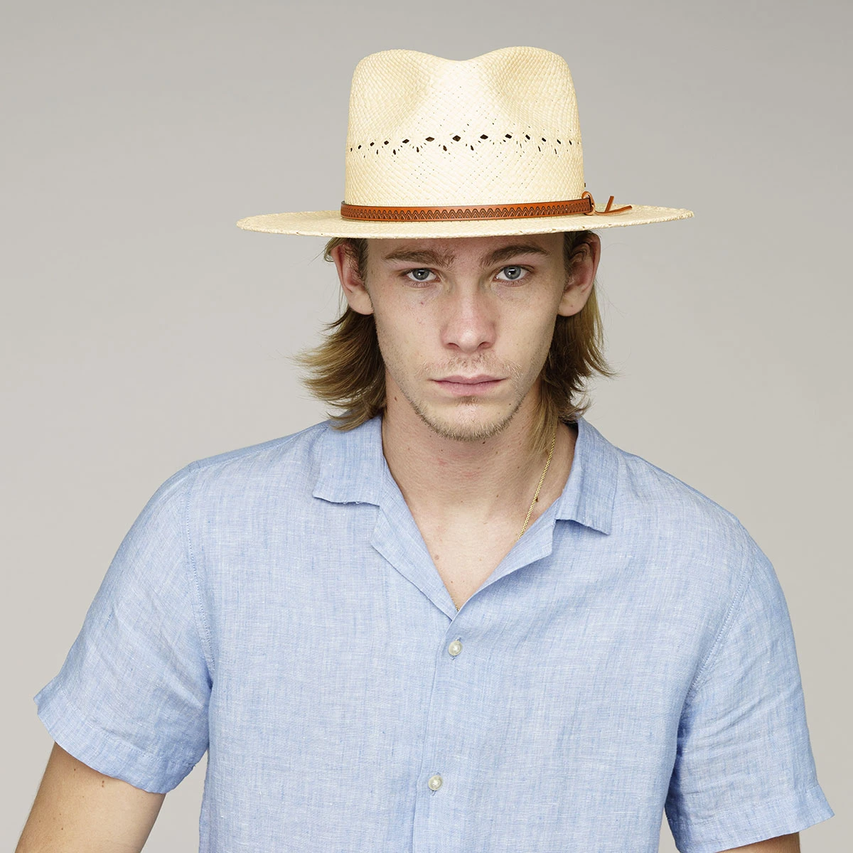 Horan is a new Bailey 1922 Panama with a 3″ flat brim. Finely woven, it is lightweight and uniquely designed. Perfect for hot weather; stay cool, calm and collected in our new Panama style.