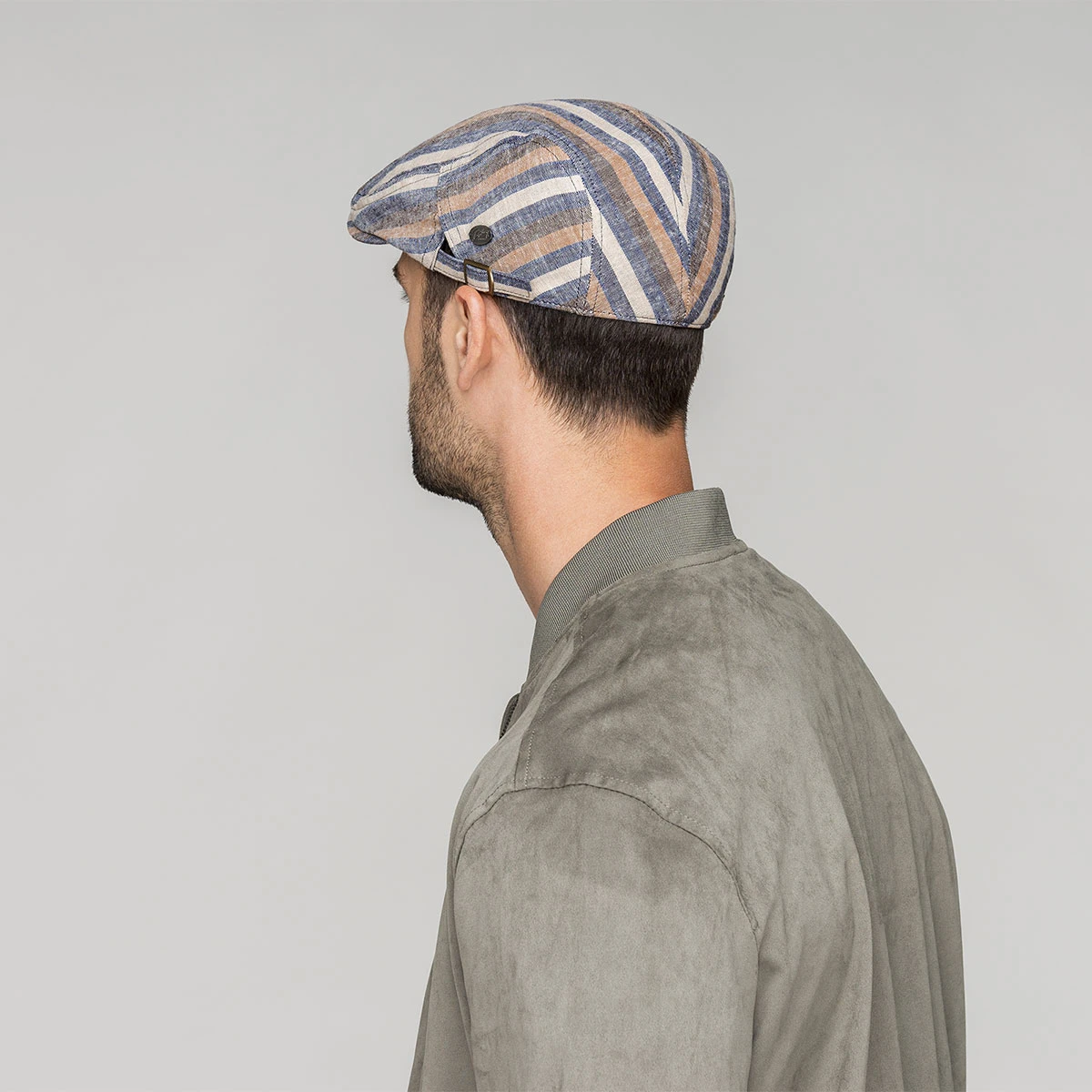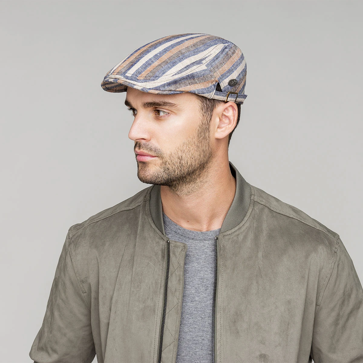 For those who have a passion for stripes and love our Bailey® caps, this striped flat cap is for you. The fabric is made from a cotton and linen blend in a striped pattern, exuding a soft natural feel that welcomes one to try it on! With a soft lining and 2 adjustable side buckles, the Jaxson promises unparalleled style, comfort and fit.