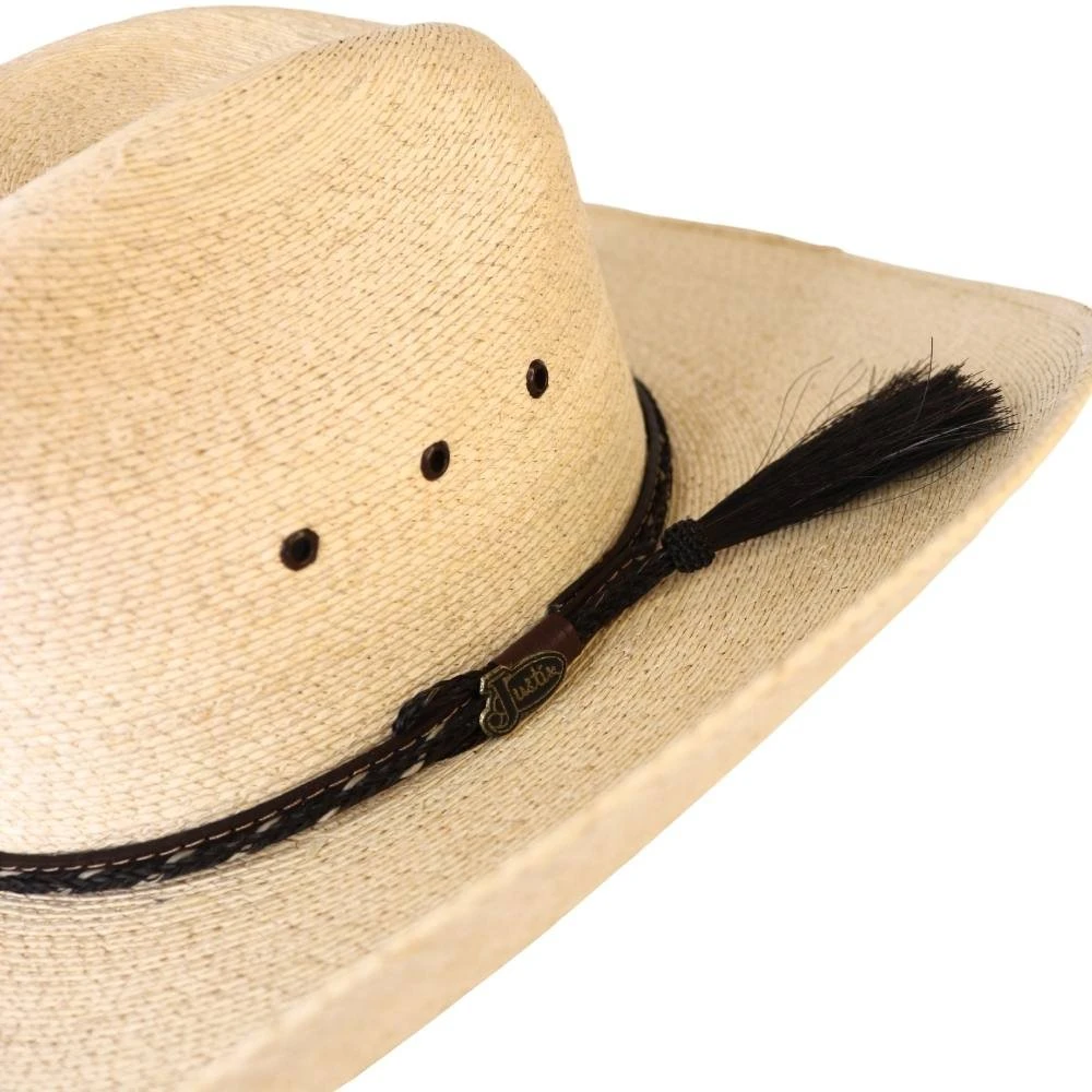 Leather outside band with horsehair tassel & logo pin