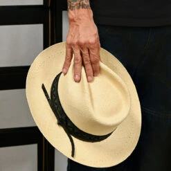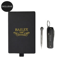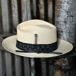 With it’s distinguished 4-1/4″ twisted front dent crown, our 100 year Anniversary Bailey 1922 genuine Panama has a 3″ flat brim. It is trimmed with a laser etched Ginkgo leaf patterned wide ribbon band and a narrow ostrich leather band overlay. Finished with our fine leather sweatband, this exclusive hat ships which our Damascus nail and matching knife set and our Bailey tote.