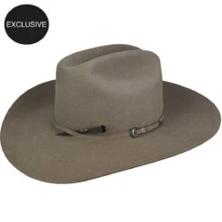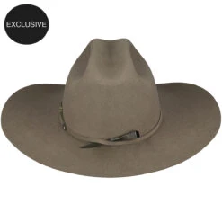 Bailey’s 100-year Anniversary Reign western hat is made from 100% beaver fur felt and comes in a subtle natural color. This luxurious hat is trimmed with a soft leather sweatband and is fully lined with our white and gold foil silk Bailey liner. The band is exclusively made in thin felt and is finished with a sterling silver buckle set. In honor of Bailey’s 100 years of hat making, it ships with our Anniversary Damascus nail and matching knife set and Bailey tote.