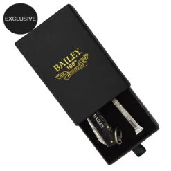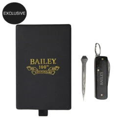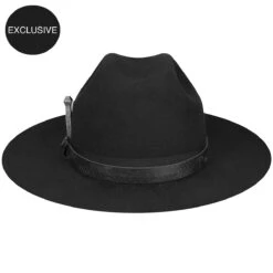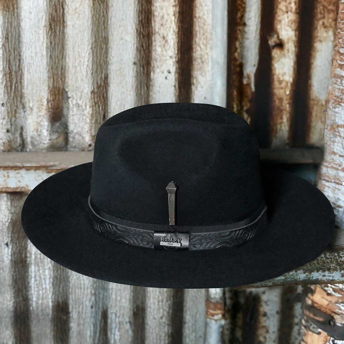 Celebrate Bailey’s 100-year Anniversary with a luxurious fur felt hat. Made with a tall cattleman crown and a 3-inch flat brim, this exclusive hat was designed with an eye to both the past and future. It is fully lined and sports a black ribbon with embossed leather band overlay and our new Bailey 1922 logo pin. A soft leather sweatband assures a cozy and comfortable fit. Honoring 100 years of hat making, this exclusive hat ships with Bailey’s Anniversary Damascus nail and matching knife set and Bailey tote bag.