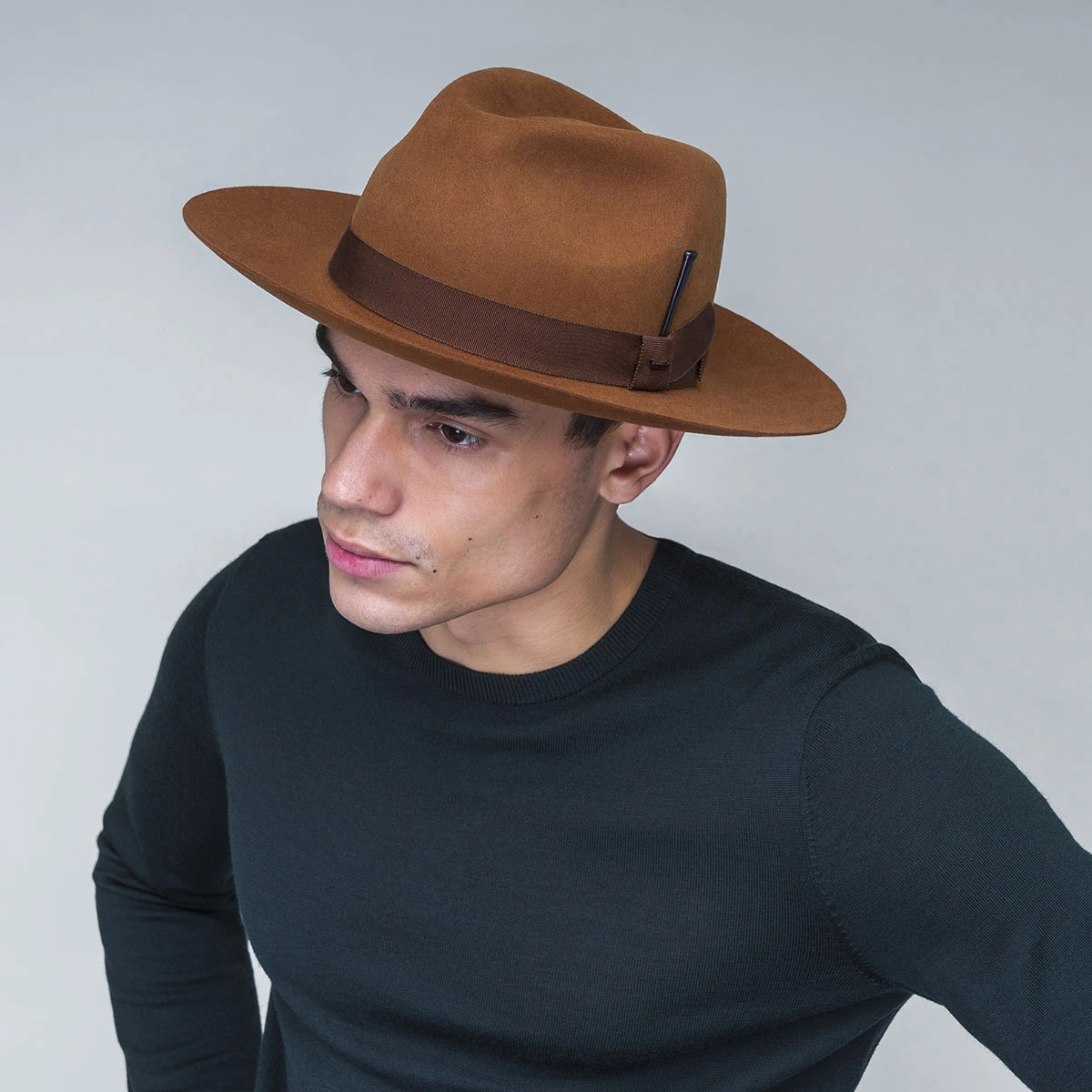 Part of our Superior Fur Felt collection, the Nilson is a rabbit and beaver fur hat with a 4″ long teardrop crown and 2-7/8″ brim, and trimmed with an origami inspired half bow.This is finished with our vintage flooring nail. With elegance and comfort, this is a Bailey 1922 favorite.