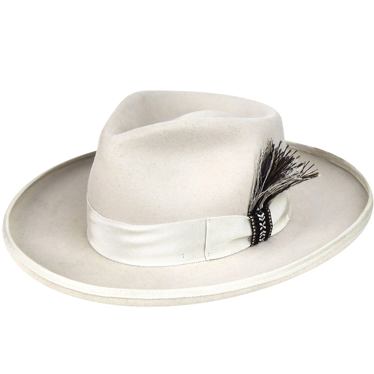 Cote 2X is a hat where sophistication meets free spirit. Its clean structured look, with its frayed band detail to mock the traditional feather treatment, gives new life to a classic wool fedora hat. It is 100% genuine wool felt, and is trimmed with ribbon materials.