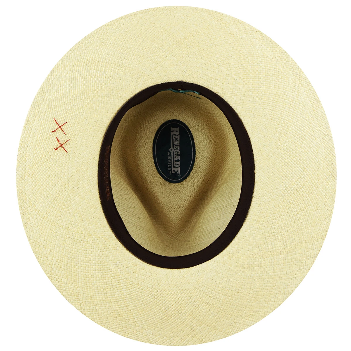 Renegade’s new genuine panama, Foss, is sure to turn heads. This natural colored panama, hand woven in Ecuador, comes with a southwest inspired band, with grosgrain and hand stitched details. Those same hand stitched details form two x’s on the hats brim where a feather is held in place. This hat also comes with a moisture wicking sweat for added comfort.