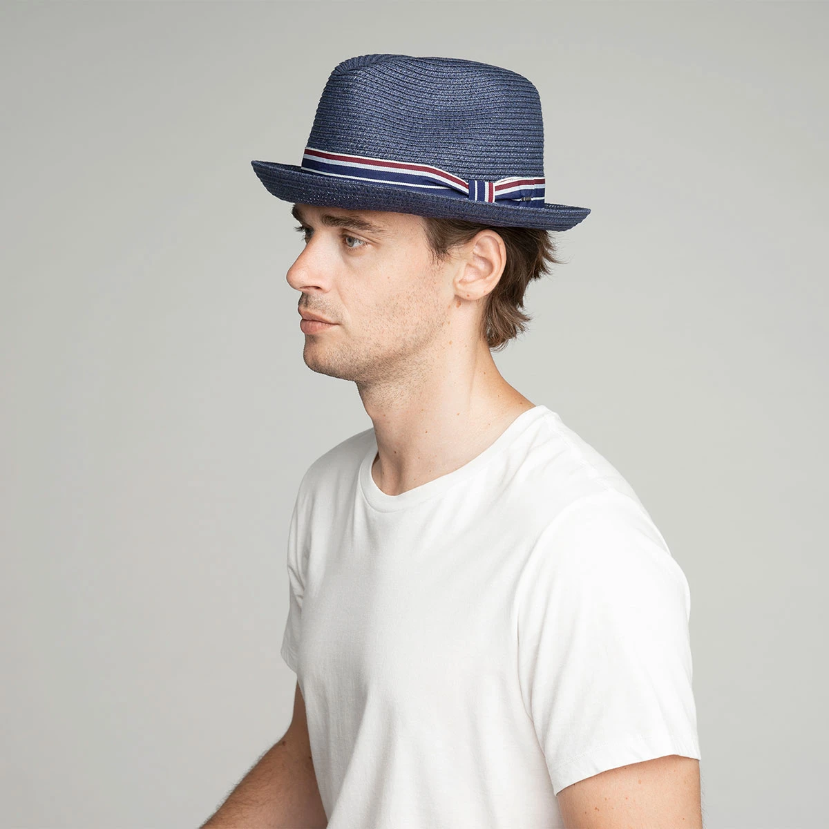 The Salem is a tried and true Bailey classic Toyo braid fedora. It features a center dent crown and 2″ snap brim and is available in a neutral color palette with a custom pop color striped grosgrain hatband. Lightweight and crushable, the Salem is the perfect on-the-go fedora that you can wear all summer long.
