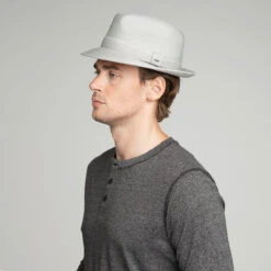 Made with 100% polypropylene, the Tate is a spring and summer fedora from the Bailey 1922 Breed group. This braided fedora has a 2” turn up brim and a center dent crown.