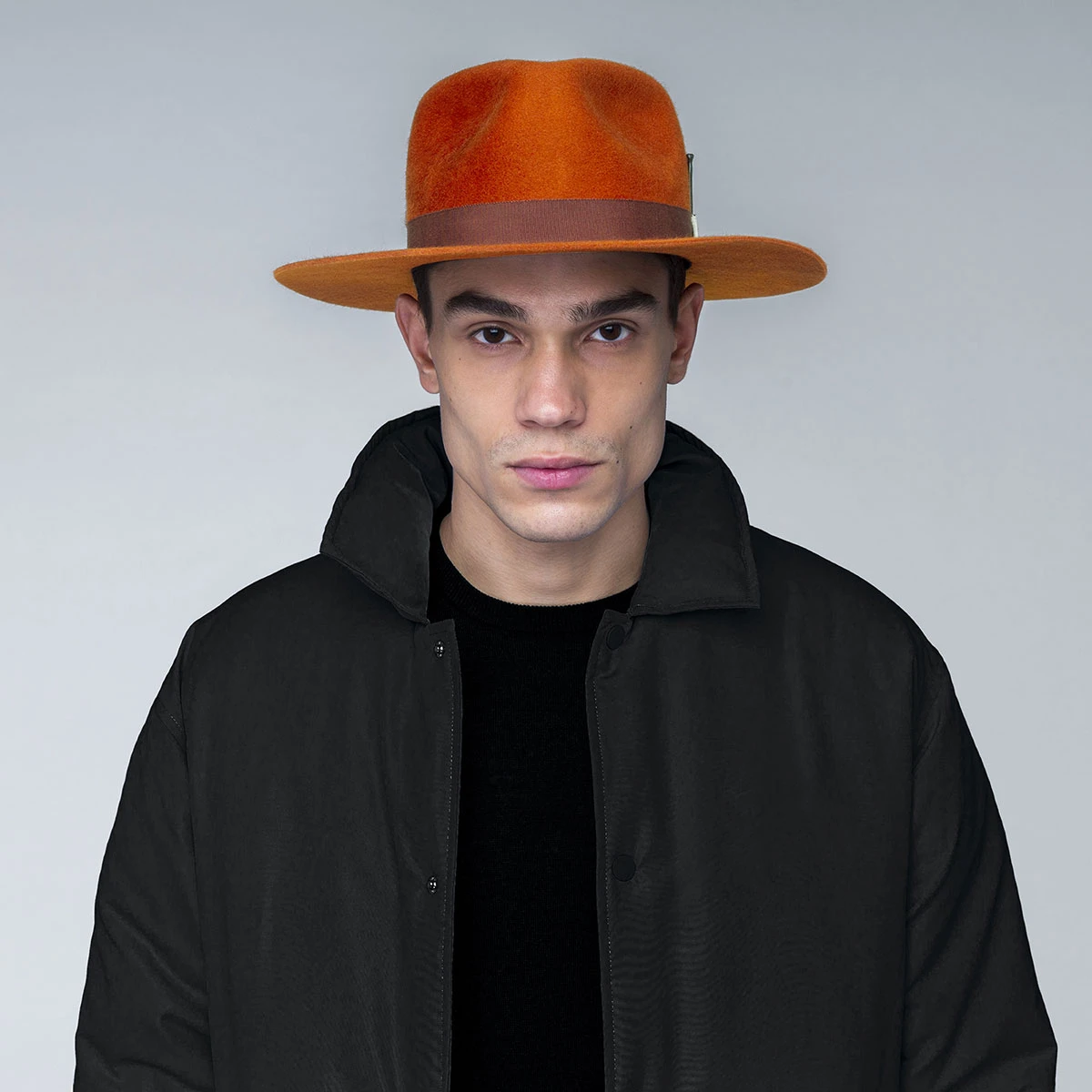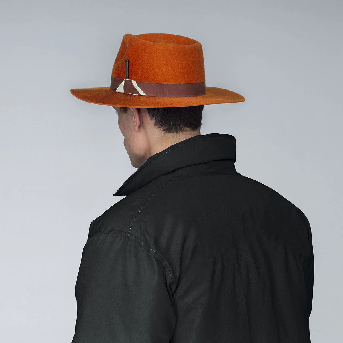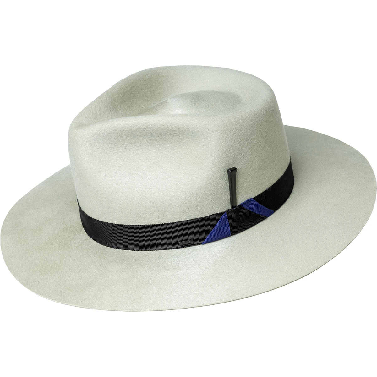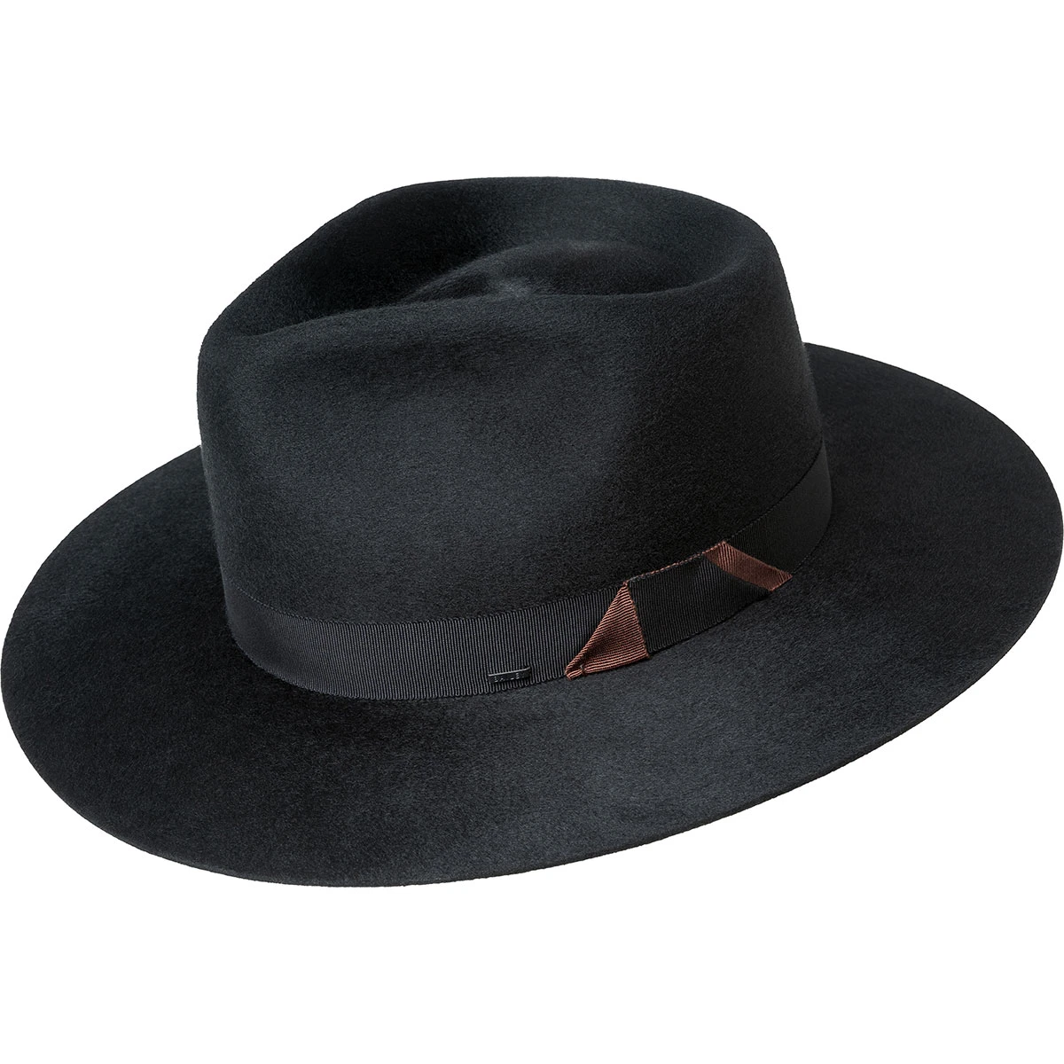 Trimmed with a Japanese grosgrain geometric Black band, Trevel has a 4 3/4″ Raised Front Teardrop Crown and a stylish 3″ Flat Brim. its Bailey 1922 dipped nail accent brings it all together. Made from 100% wool, Trevel is part of our Elite Superfine Velour collection